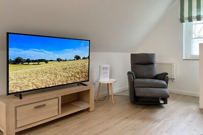 Im 2. Obergeschoss befindet sich ein Spielzimmer für Kinder, welches auch ein gemütlicher Rückzugsort ist um in aller Ruhe ein gutes Buch zu lesen. Der dort befindliche Fernseher ist zur Nutzung von Streamingdiensten gedacht.
