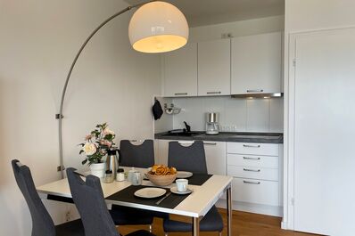 Unsere Irma 28 erstrahlt seit Juni 2023 in ganz neuem Glanz und lädt zu herrlichen Urlaubstagen ein. Die 37 qm große Wohnung ist ideal für 2 Personen geeignet oder für eine kleine Familie mit Kindern bis zu 14 Jahren. Das lichtdurchflutete Wohnzimmer mit integrierter Küchenzeile und Essgruppe ist modern eingerichtet und bietet WLAN, Flachbild-TV und eine bequeme Schlafcouch mit integriertem Lattenrost und Matratze (160 x 200 cm). Sie können sogleich eine Wohlfühl-Atmosphäre spüren. Von hier aus gelangen Sie auf den Balkon, von dem aus Sie einen grandiosen Blick auf die Nordsee und den Strand genießen können. Das Schlafzimmer mit zwei Einzelbetten (90 x 200 cm) und das Duschbad mit Fenster sind klein, aber fein. Schauen Sie sich gleich die Bilder unserer Irma 28 an und überzeugen Sie sich selbst: Eine attraktive Ferienwohnung erwartet Sie!