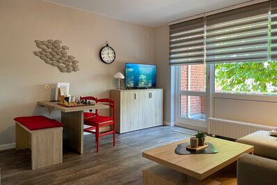 Willkommen in unserer charmanten Ferienwohnung Seeblick 16 direkt am Sandwall auf der wunderschönen Nordseeinsel Föhr! Mit einer Größe von ca. 46 m² bietet die Unterkunft den idealen Rückzugsort für zwei Gäste, die Erholung und Komfort suchen. Genießen Sie die Nähe zur Nordsee und lassen Sie sich von der einzigartigen Atmosphäre der Insel verzaubern. Unser gemütliches Wohnzimmer lädt zum Entspannen ein und bietet eine gemütliche Sitzecke sowie eine Essgruppe, an der Sie Ihre Mahlzeiten genießen können. Die gut ausgestattete Küchenzeile lässt keine Wünsche offen – ob Frühstück, Mittagessen oder Abendessen, hier können Sie nach Herzenslust kochen. Moderne Annehmlichkeiten wie WLAN und TV sorgen dafür, dass Sie auch im Urlaub immer bestens vernetzt bleiben. Das Badezimmer mit Fußbodenerwärmung ist mit einer komfortablen Dusche und einem Handtuchheizung ausgestattet und verfügt über eine Waschmaschine, den Sie kostenfrei nutzen können – ideal für längere Aufenthalte. Das separate Schlafzimmer bietet zwei bequeme Einzelbetten (90 x 200 cm), die für erholsame Nächte sorgen. Unser Seeblick 16 befindet sich in einer der besten Lagen auf Föhr: direkt am beliebten Sandwall, der Strandpromenade von Wyk. Von hier aus erreichen Sie den Strand, gemütliche Cafés, Restaurants und Einkaufsmöglichkeiten in wenigen Minuten zu Fuß. Genießen Sie den Blick auf das Meer oder unternehmen Sie ausgedehnte Spaziergänge entlang der Küste. Buchen Sie jetzt Ihre Auszeit auf Föhr und erleben Sie unvergessliche Tage in unserer liebevoll eingerichteten Ferienwohnung Seeblick 16! Wir freuen uns darauf, Sie bei uns willkommen zu heißen.