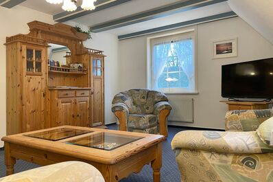 Die Wohnung Sieck 2 ist eine ca. 58 qm große Ferienwohnung in der ersten Etage und bietet 4 (bis maximal 5) Personen genügend Platz für einen entspannten und erholsamen Urlaub. Das behagliche Wohnzimmer ist lichtdurchflutet und bietet Ihnen neben W-Lan, Flachbild-TV und CD-Player eine gemütliche Sitzgruppe an. Ruhige und erholsame Nächte verbringen Sie in den beiden Schlafzimmern mit je einem Doppelbett, Verdunklungsrollos und einem Kleiderschrank. In einem der beiden Schlafzimmer befindet sich zusätzlich ein Einzelbett. In der gut ausgestatteten Küche mit Ceranfeldherd und Backofen, Geschirrspüler und Mikrowelle, Kaffeemaschine, Wasserkocher und Kühlschrank mit Gefrierfach können Sie sich auch prima selber versorgen, wenn Sie nicht in eines der netten Restaurants auf der Insel gehen möchten. In der Küche befindet sich ebenfalls eine kleine Essgruppe. Das Bad ist hell gefliest und verfügt über eine Dusche und ein Fenster. Planen Sie gleich Ihren Urlaub und schauen Sie sich die Fotos an. Wir freuen uns auf Sie!